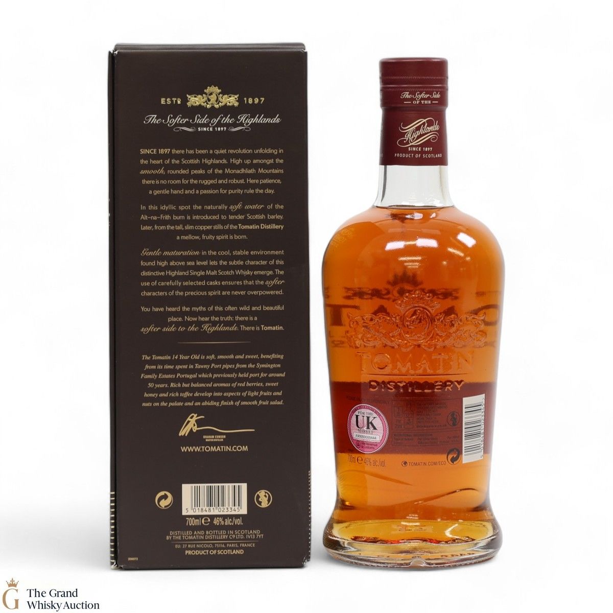 The Tomatin 14 Year Old was introduced to the core range in 2014. Matured in bourbon barrels and selected Port casks, imparting wine-like sweetness to the whisky.