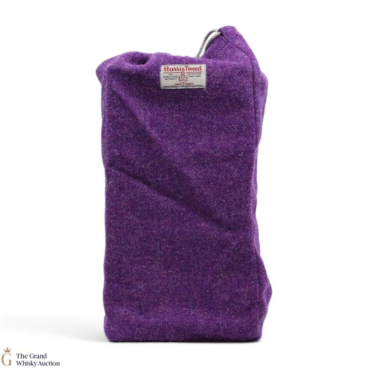 Each bottle comes in a wooden box that has been handcrafted by cabinet maker Ross Samson from Scottish Elwood, the stopper and collar are made from Sterling Silver by The Scottish Silver silversmith and the outer box has been lined with purple Harris Tweed fabric along with a jacket to match.