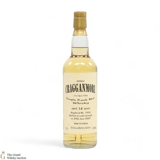 This single-cask malt was distilled at the Cragganmore Distillery in Speyside on the 21st of April 1993 and matured for 14 years in Hogshead #1958 before being bottled at cask strength on the 29th of June 2007.
