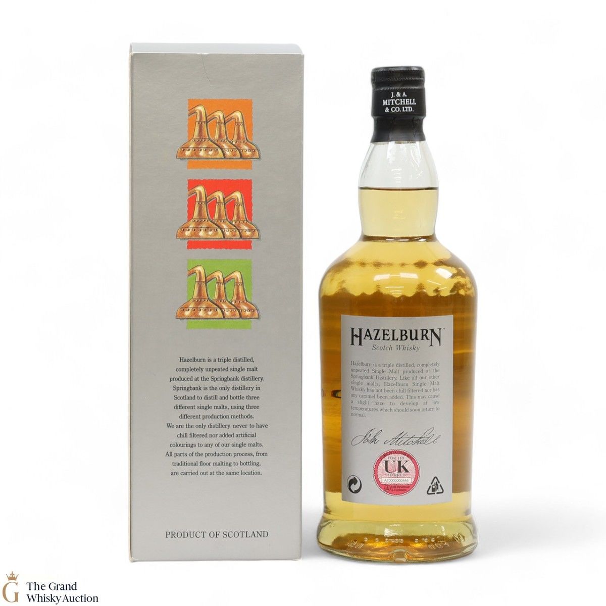 This 8-year-old Hazelburn is a triple distilled, completely unpeated single malt produced at Campbeltown's Springbank Distillery. To celebrate the First Release Hazelburn, Springbank Distillers Ltd commissioned artist Ian Gray to paint 3 pictures of the distillery. The 3 paintings were then turned into both labels and a series of limited edition prints.