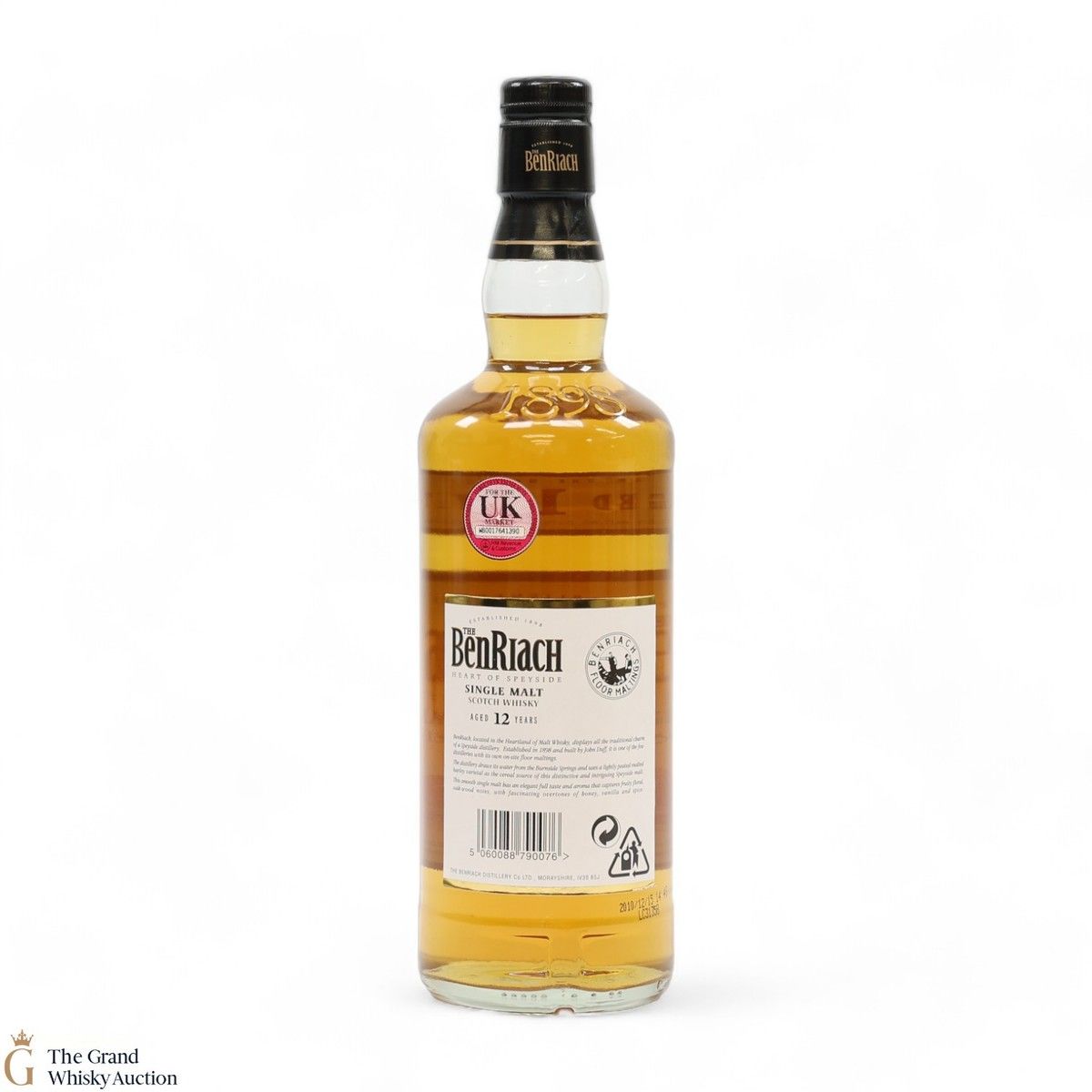 Distilled at the BenRiach Distillery in Speyside, this single malt was aged for 12 years before being bottled at 40% ABV. Bottled in the early 2000s with the distillery illustration in a faded gold colour rather than the more familiar red of most of the 12-year-old bottlings from the Noughties.