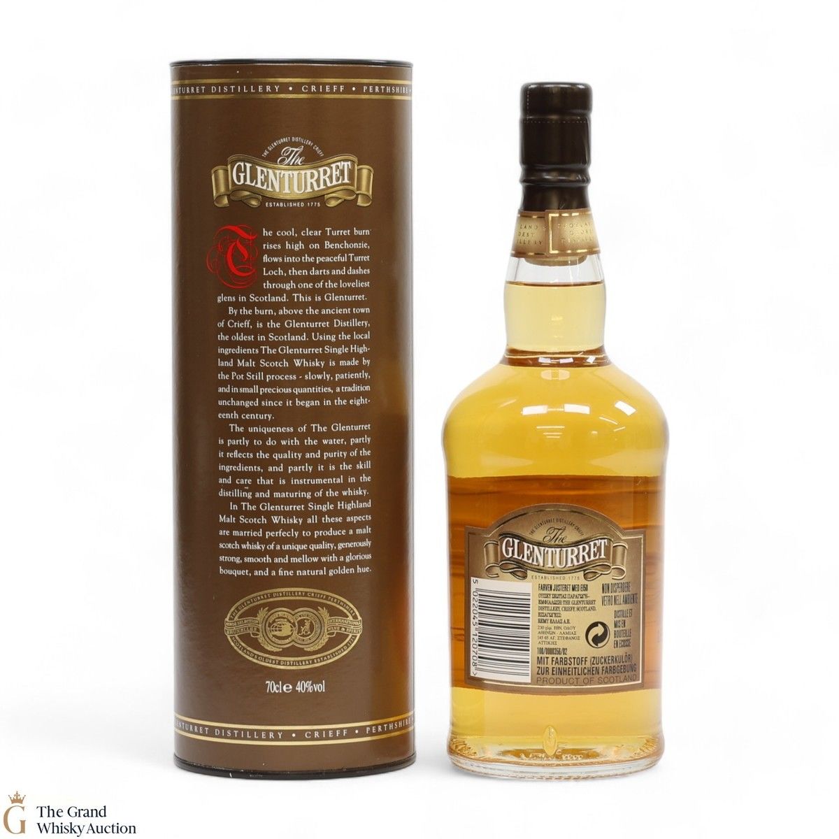 Due to the various ages of bottles and their seals, the condition of liquid is at the buyer's discretion and no claim can be lodged against failure/leakage in transit. Loss and breakage cover is available at 3% of the hammer price as standard. If the lot is not insured, no claim can be lodged against the courier or The Grand Whisky Auction for breakage or loss in transit.