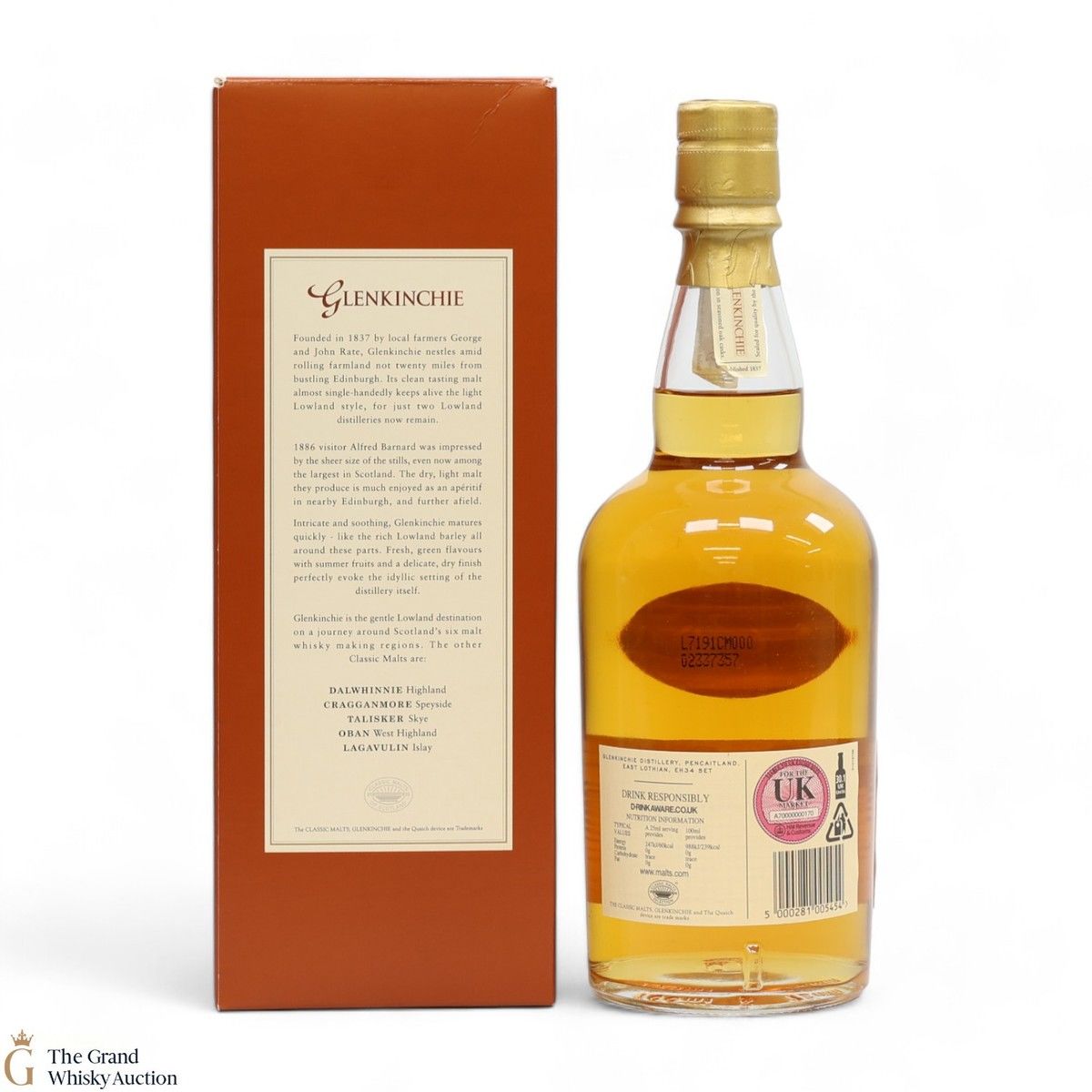 This 10-year-old is an older style bottling from Glenkinchie Distillery, that comes presented in the famous orange box - with the classic malt stamp on the front of the box. The Glenkinchie 10-year-old has since been replaced by the 12-year-old.
