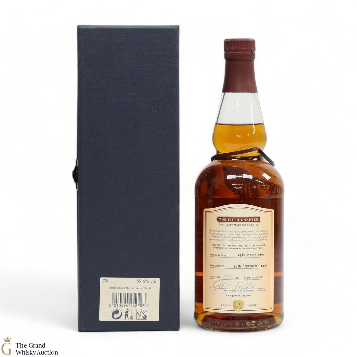 This is the fifth chapter of Glen Moray's Distillery Manager's Choice, distilled in 1992 and bottled at a strength of 59.6% ABV.