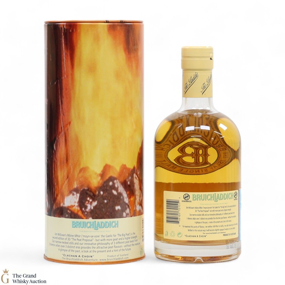 Moine Mhor is Gaelic for 'big peat' - This is a vatting of 3 different peat levels from 3 diverse cellars over 3 distinct eras, thus the name '3D': Heavily peated 2001 Port Charlotte, moderately peated 1998 whisky and 1989 lightly peated Bruichladdich. This bottling is the second edition of 3D "The Peat Proposal" but with more peat and higher strength.