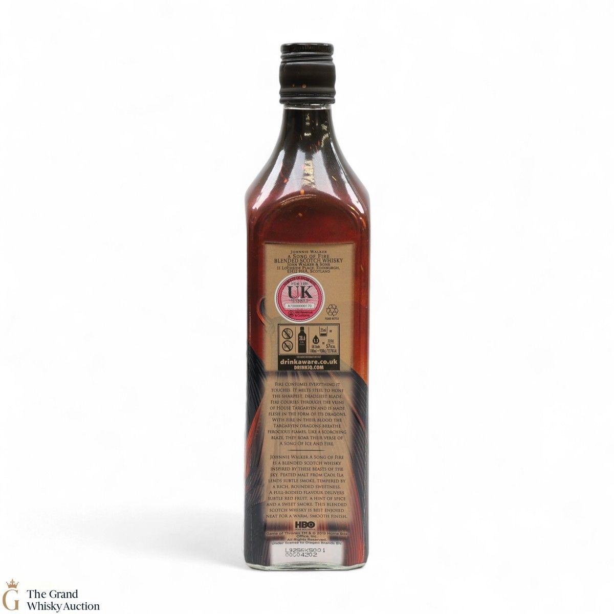 A limited-edition celebration and ode to Game of Thrones, Johnnie Walker A Song of Fire. The subtle notes of the smoke and peated malts from the Caol Ila distillery within the blend pay homage to the Dragons of House Targaryen.