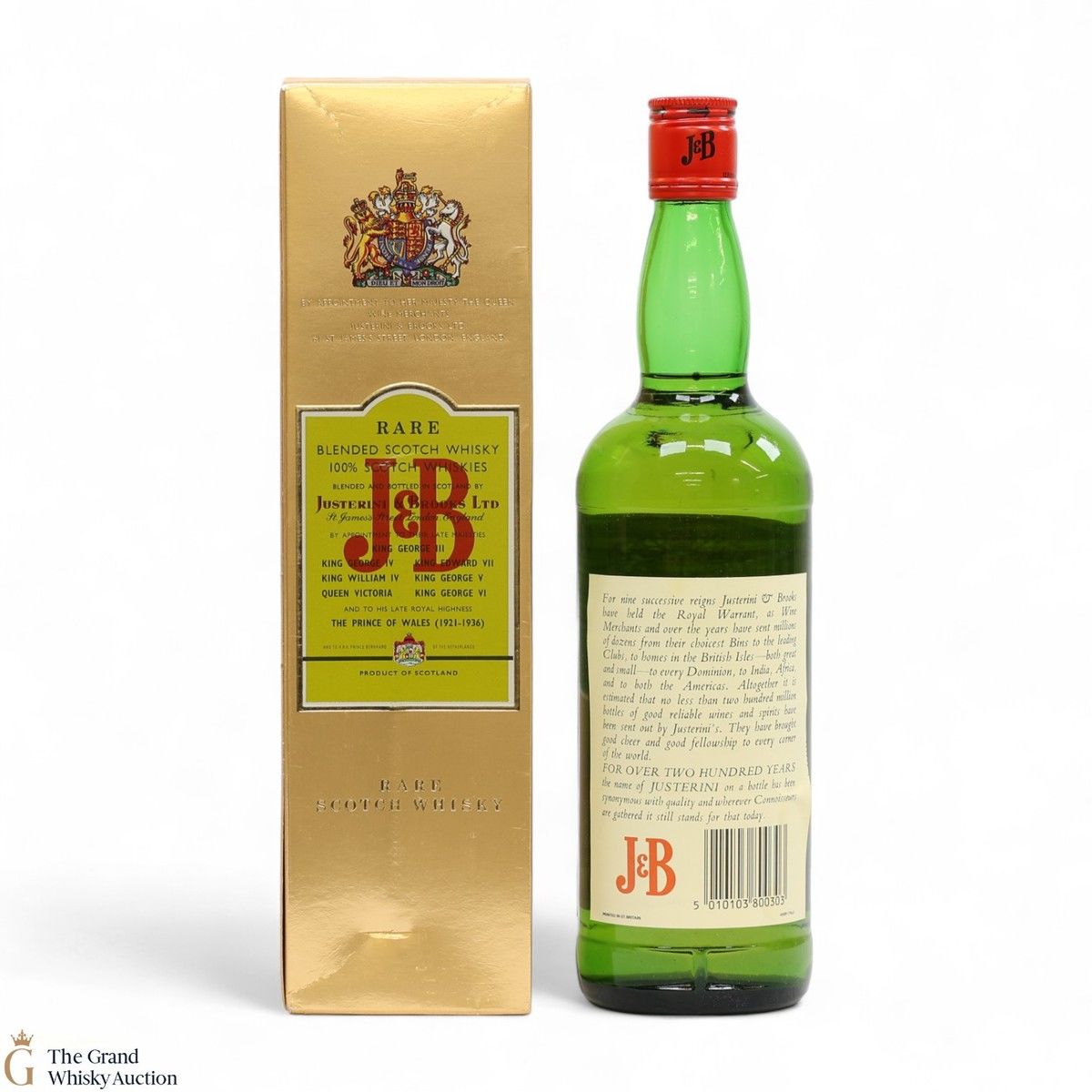 This is an older style 75cl bottling of Justerini and Brooks blended whisky from the 1980s. J&B Rare is so recognisable as they haven't changed the iconic bottle or label design much for decades!