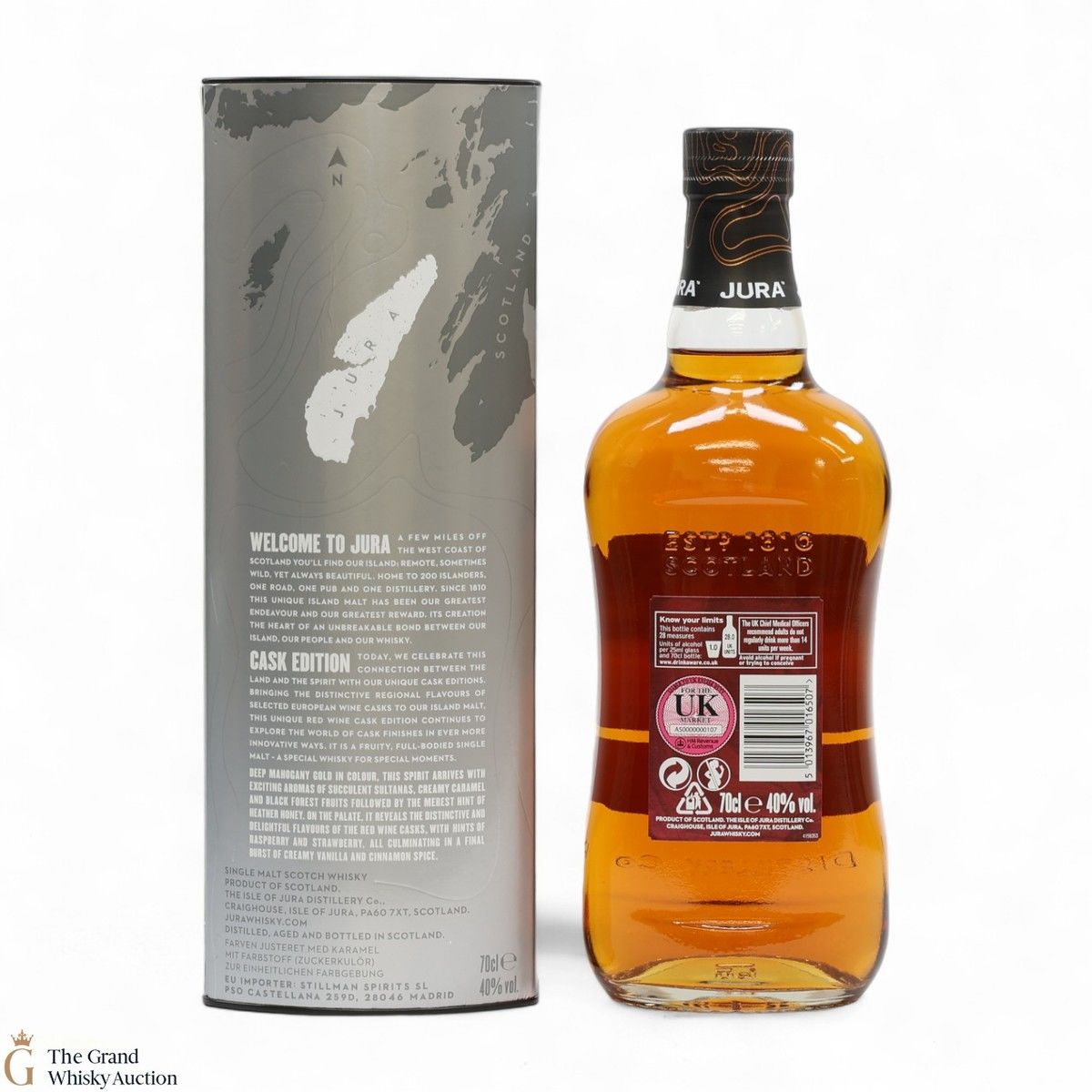 Jura Cask Editions celebrate flavours of selected European wine with the island malt and this unique red wine cask edition continues to explore the world of cask finishes in ever more innovative ways.
