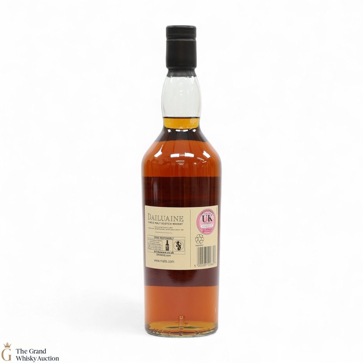 Due to the various ages of bottles and their seals, the condition of liquid is at the buyer's discretion and no claim can be lodged against failure/leakage in transit. Loss and breakage cover is available at 3% of the hammer price as standard. If the lot is not insured, no claim can be lodged against the courier or The Grand Whisky Auction for breakage or loss in transit.
