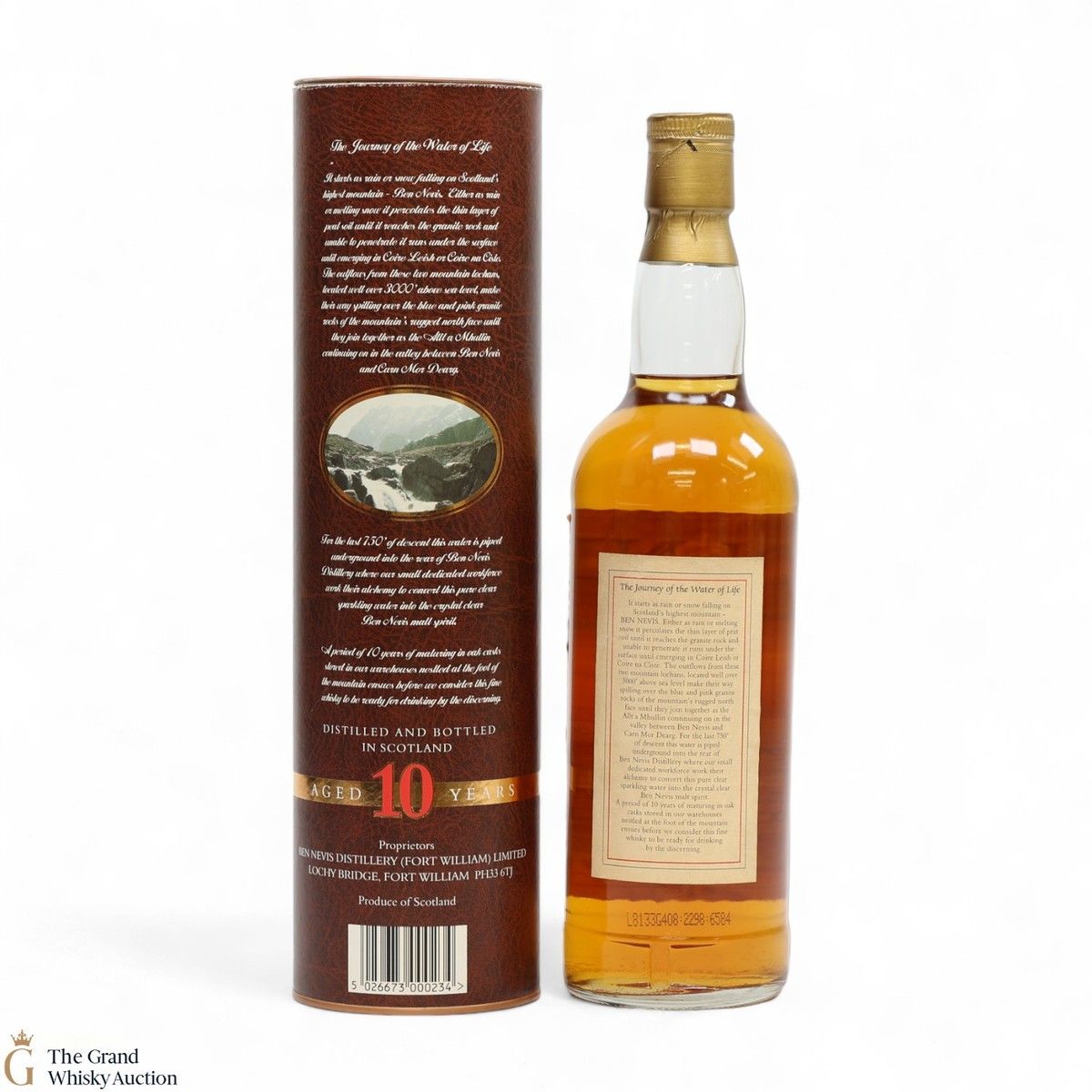 Due to the various ages of bottles and their seals, the condition of liquid is at the buyer's discretion and no claim can be lodged against failure/leakage in transit. Loss and breakage cover is available at 3% of the hammer price as standard. If the lot is not insured, no claim can be lodged against the courier or The Grand Whisky Auction for breakage or loss in transit.