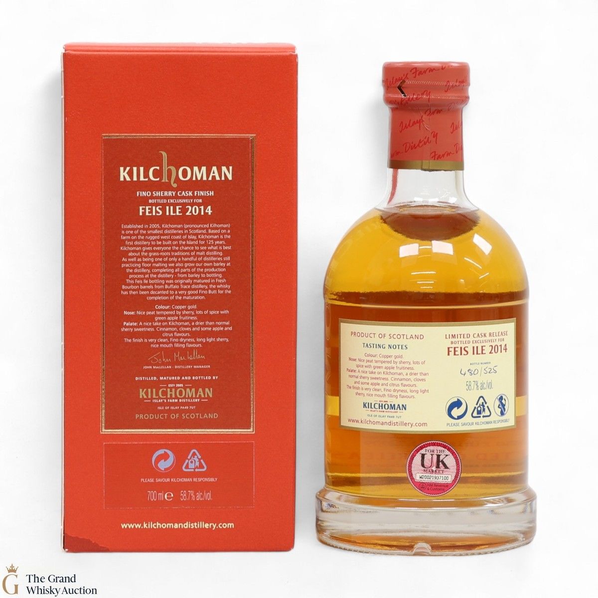 A twin cask release#328 and #329 for Feis Ile 2014 by Kilchoman Distillery in 2014. The casks were filled on 1st July 2009 and finished in Fino casks prior to being bottled on the 20th May 2014.