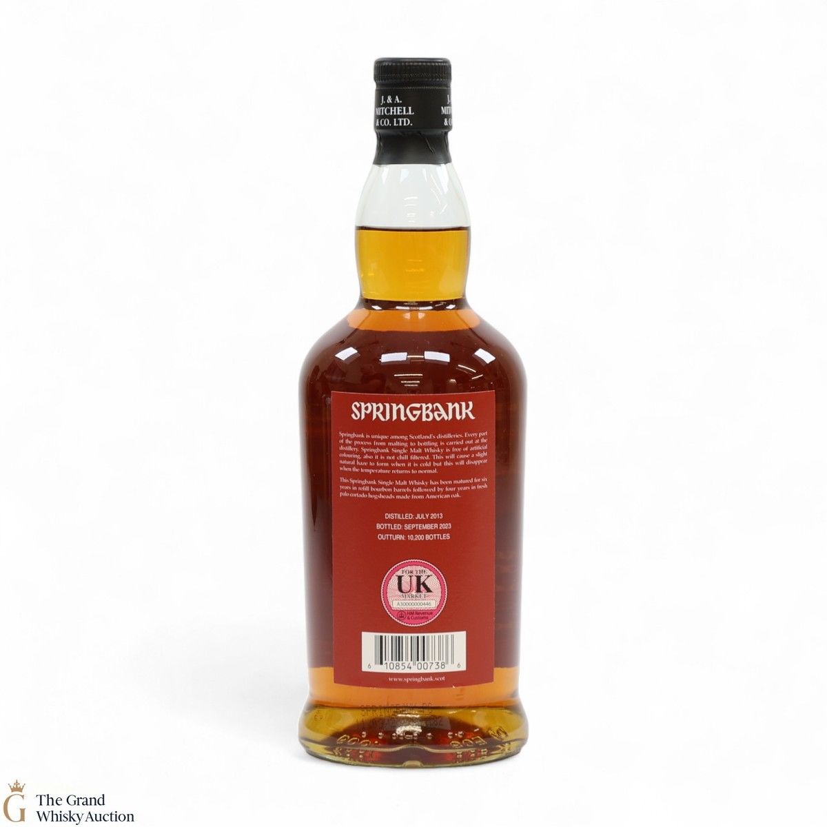 This Springbank Single Malt Whisky was distilled in July 2013 and has been matured for six years in refill bourbon barrels followed by four years in fresh palo cortado hogsheads made from American oak. It was then bottled in September 2023 at a strength of 55% ABV with an outturn of 10,200 bottles.