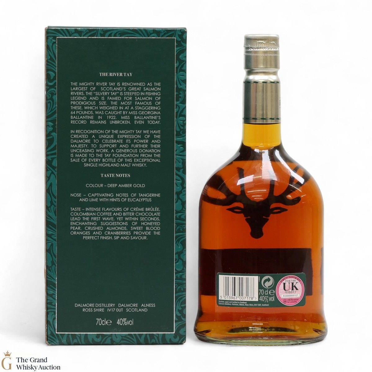 The Tay dram was aged in bourbon and Oloroso sherry casks. When originally released, Dalmore donated £4 from every bottle sold to the Tay Foundation.