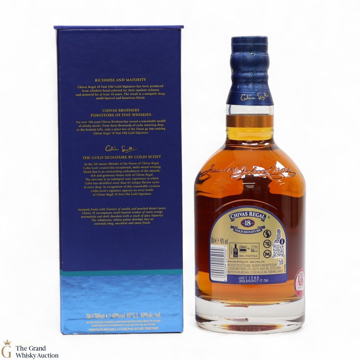This is a 70cl bottling of Chivas Regal 18-Year-Old Gold Signature. The packaging and bottling code indicates that it was bottled in 2010.