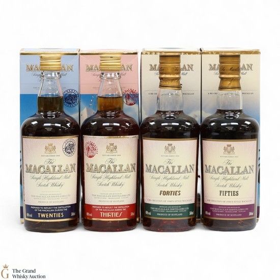 - Macallan - 1920s: Inspired by a 1920s Macallan and is the first edition of four in the travel series that was released in 2004. Most of the Macallan in the 1920s was produced and sold to whisky blenders as top dressing single malt for their blended whiskies. The remaining casks continued to mature for longer, resulting in a whisky that was drier and less toffee-sweet than Macallan today. 40% ABV, 50cl.