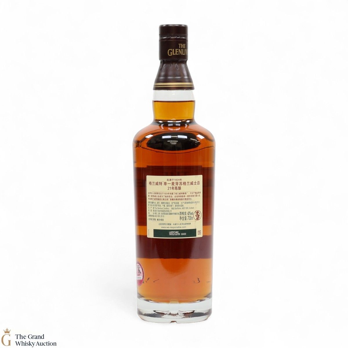 Due to the various ages of bottles and their seals, the condition of liquid is at the buyer's discretion and no claim can be lodged against failure/leakage in transit. Loss and breakage cover is available at 3% of the hammer price as standard. If the lot is not insured, no claim can be lodged against the courier or The Grand Whisky Auction for breakage or loss in transit.