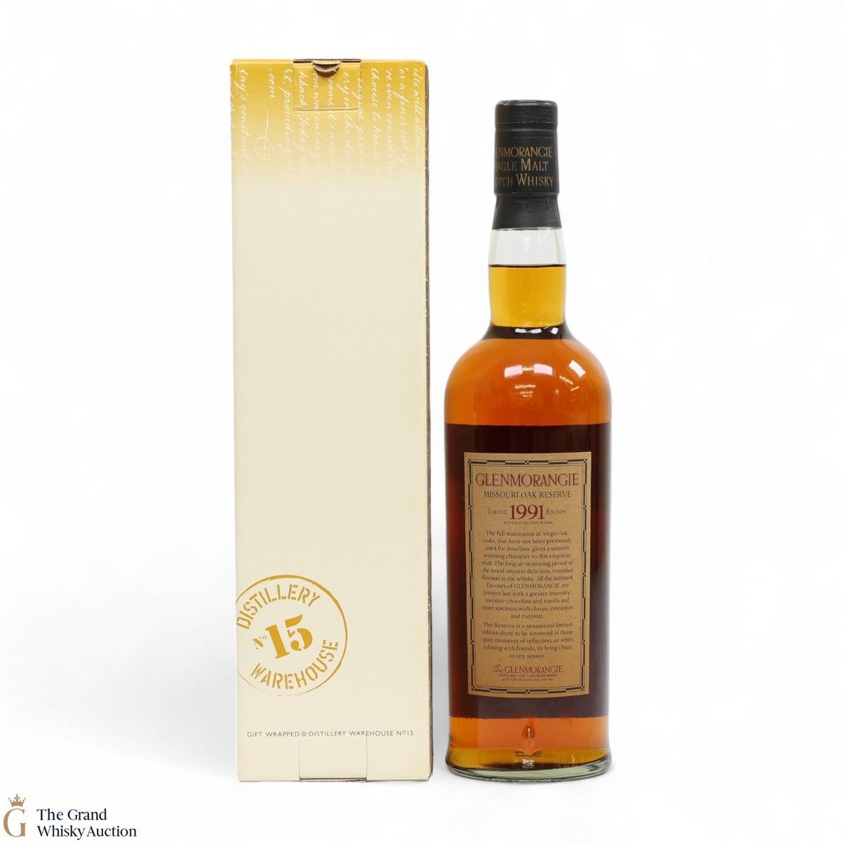 Distilled in 1991, Glenmorangie experimented with different varieties of wood. This is a limited edition Missouri Oak Reserve. Bottled in the year of 2002 at 55.7% ABV.