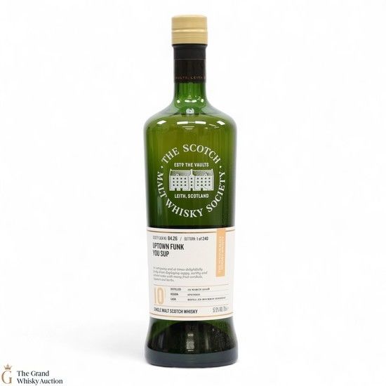 This Glendullan was distilled on the 19th of March 2008 and bottled 10 years later from a refill ex-bourbon hogshead. There were only 240 bottles released under the title of Uptown Funk You Sup SMWS 84.26.