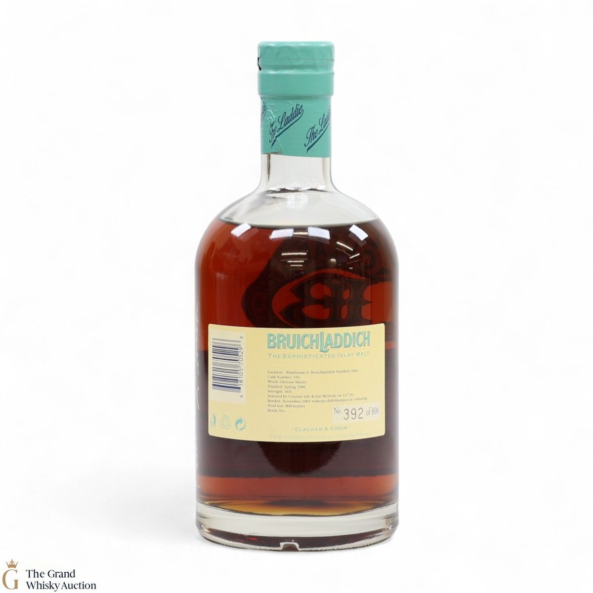 This 1986 single cask Bruichladdich was chosen by Master Distiller Jim McEwan and Country Life in 2001. This is one of just 800 bottles from the Oloroso Sherry cask #356.
