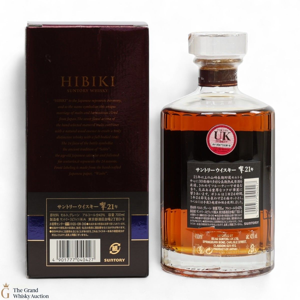 Hibiki 21 Year Old is a very popular blended whisky from Suntory. It is made up of a blend of specially selected mature malt and grain whiskies aged over 21 years. The key Yamazaki sherry casked malt is vatted with other carefully chosen mellow unblended grain whiskies over 21 years old.