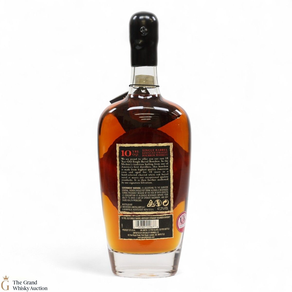 A single-barrel Kentucky Bourbon Whiskey from Michter's, this spirit has been aged for 10 years in hand-selected charred white oak barrels.