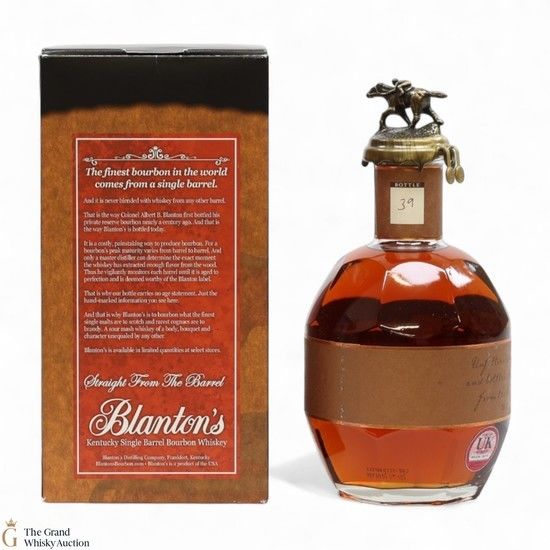 PLEASE NOTE: The wax seal on Blanton's bottles are prone to cracking in transit due to their design. Therefore, as stated in our T&C’s, we do not and will not accept liability should the seal be breached, broken, split or leak in transit. Additionally, please know due to the design of the internal cardboard packaging that surrounds the top of the bottles, it too may be torn. By bidding on this lot you have understood this to be true. Insurance is for complete breakage or loss in transit only.
