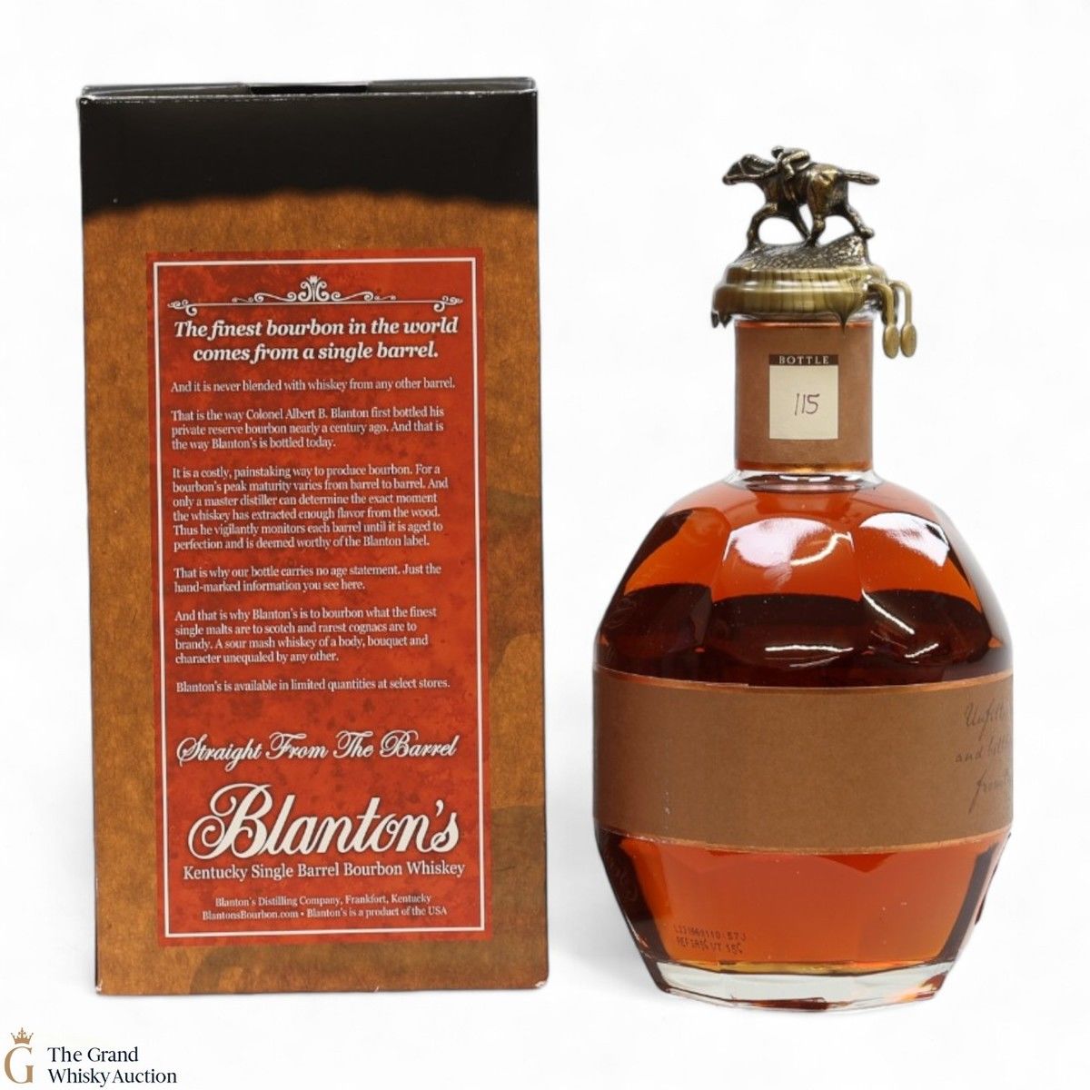 PLEASE NOTE: The wax seal on Blanton's bottles are prone to cracking in transit due to their design. Therefore, as stated in our T&C’s, we do not and will not accept liability should the seal be breached, broken, split or leak in transit. Additionally, please know due to the design of the internal cardboard packaging that surrounds the top of the bottles, it too may be torn. By bidding on this lot you have understood this to be true. Insurance is for complete breakage or loss in transit only.