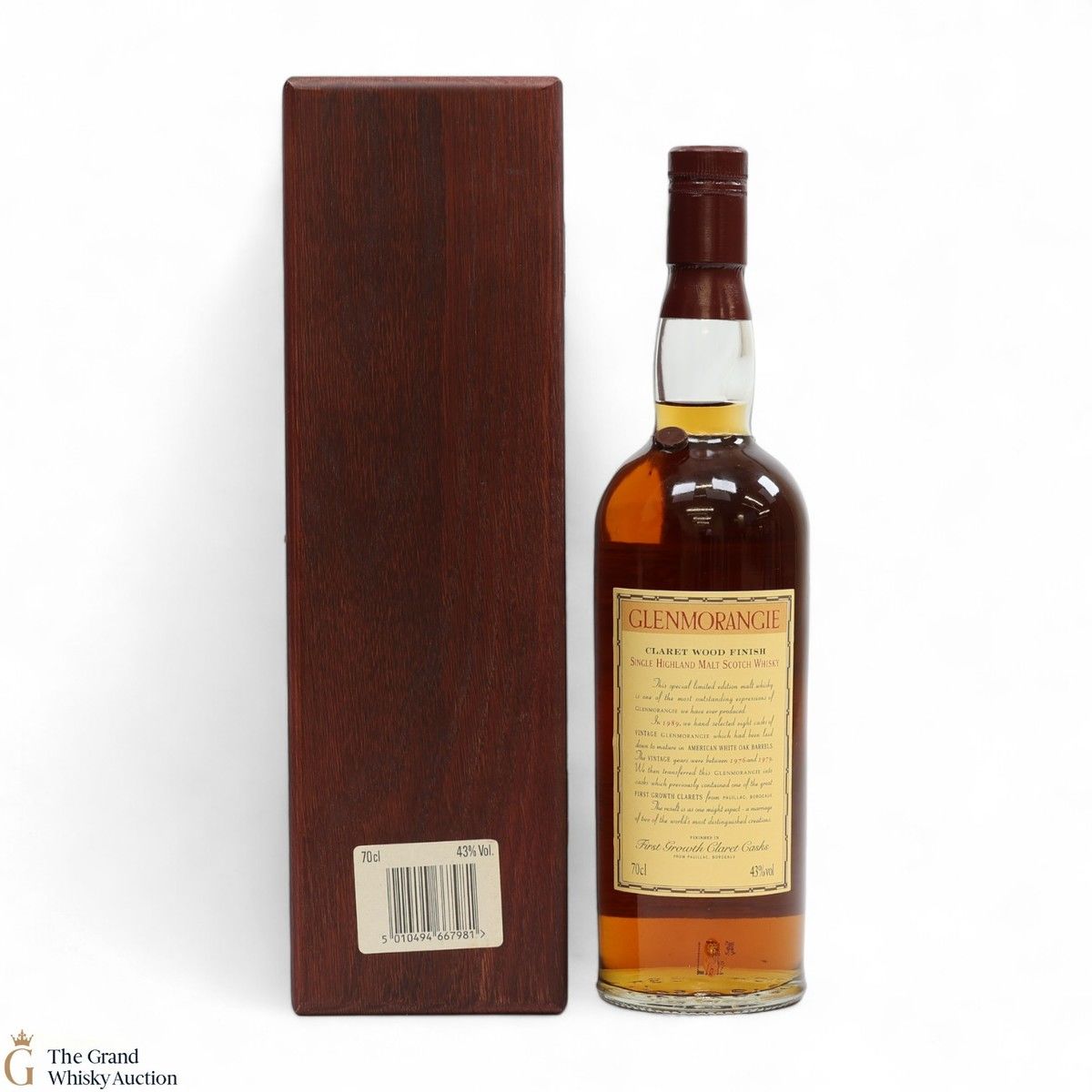 Produced in Scotland this Glenmorangie Claret Finish has been traditionally matured in American White Oak Barrels. This limited edition 000489 has been finished in a first growth claret cask from Pauillac Bordeaux. In 1989 they hand selected 8 casks of vintage Glenmorangie which was laid to mature in American White Oak Barrels.