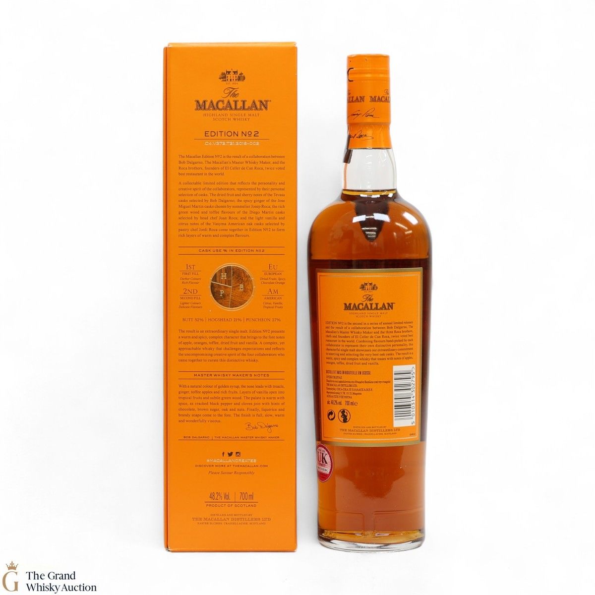 This is the second release from the Macallan Edition series. Edition No.2 is a collaboration between Macallan's master blender Bob Delgarno and legendary Spanish chefs Joan, Josep and Jordi Roca. The Rocas are the three brothers behind El Celler de Can Roca (named Best Restaurant in the World twice by Restaurant magazine). This single malt was drawn from a combination of sherry puncheons, butts and refill hogsheads.