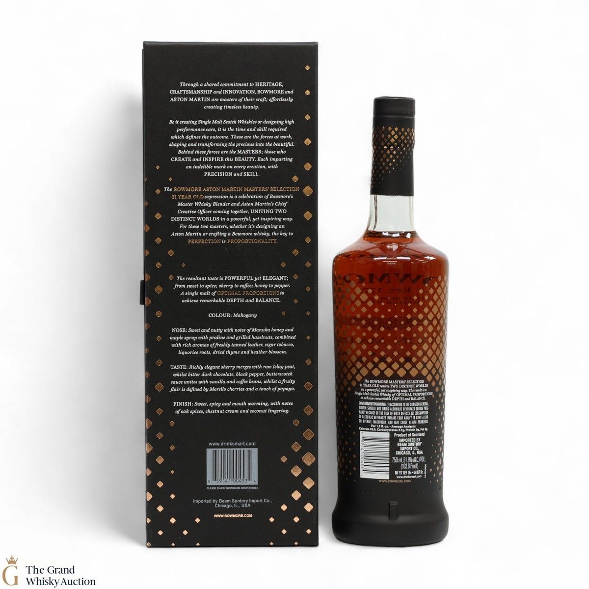 This 21-Year-Old Bowmore is a limited-edition single malt created in collaboration between Ron Welsh, Bowmore Master Blender and Marek Reichman, Aston Martin Chief Creative Officer. Matured in a combination of oloroso and Pedro Ximenez sherry casks. The result is a single malt that thrills all the senses for optimal enjoyment.