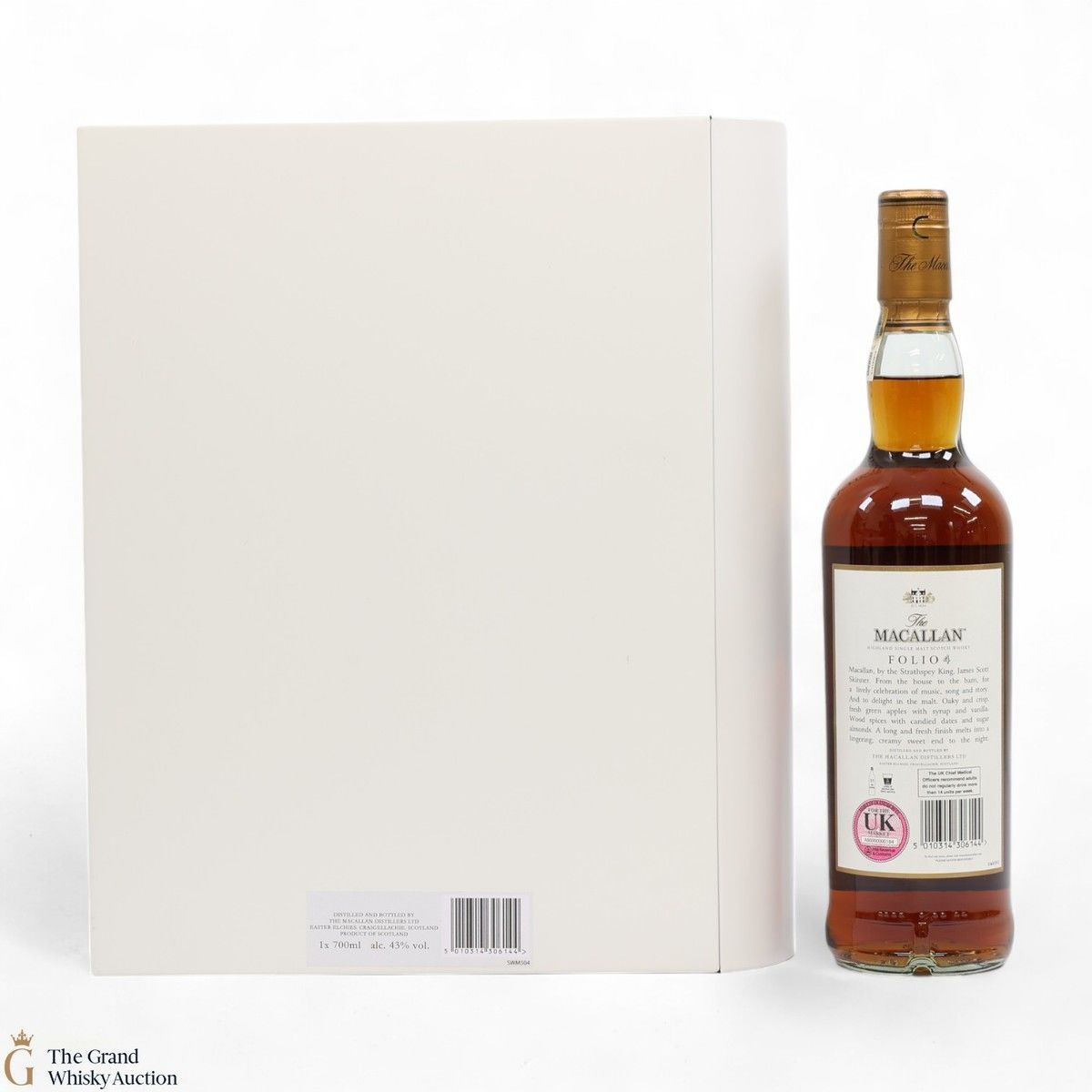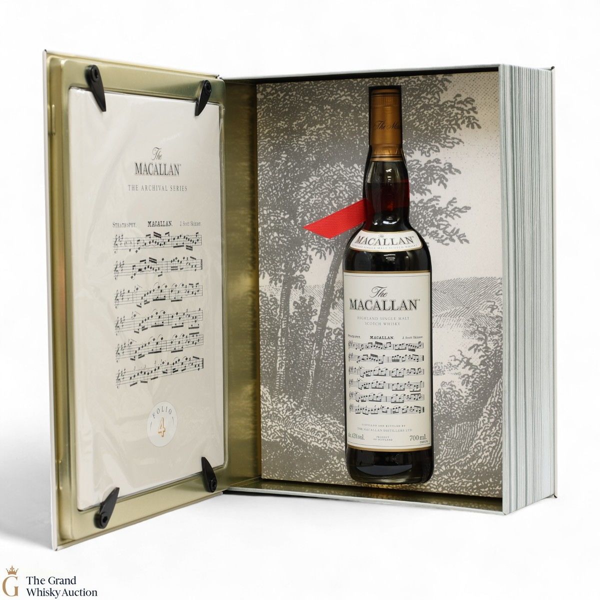 The fourth edition in the Archival Series from The Macallan. Folio 4 remembers the legendary advertising campaigns of the 1970s, 1980s and 1990s that brought The Macallan to the public’s attention outside of Scotland. It is presented in a beautiful book shaped, tin case. It features an advertisement including a Strathspey composed by James Scott Skinner (1843-1927). The advert notes that Skinner was so moved by his favourite malt he created a unique piece of music featuring his signature lilting notes with the simple catchphrase: “The Macallan. The Malt.”