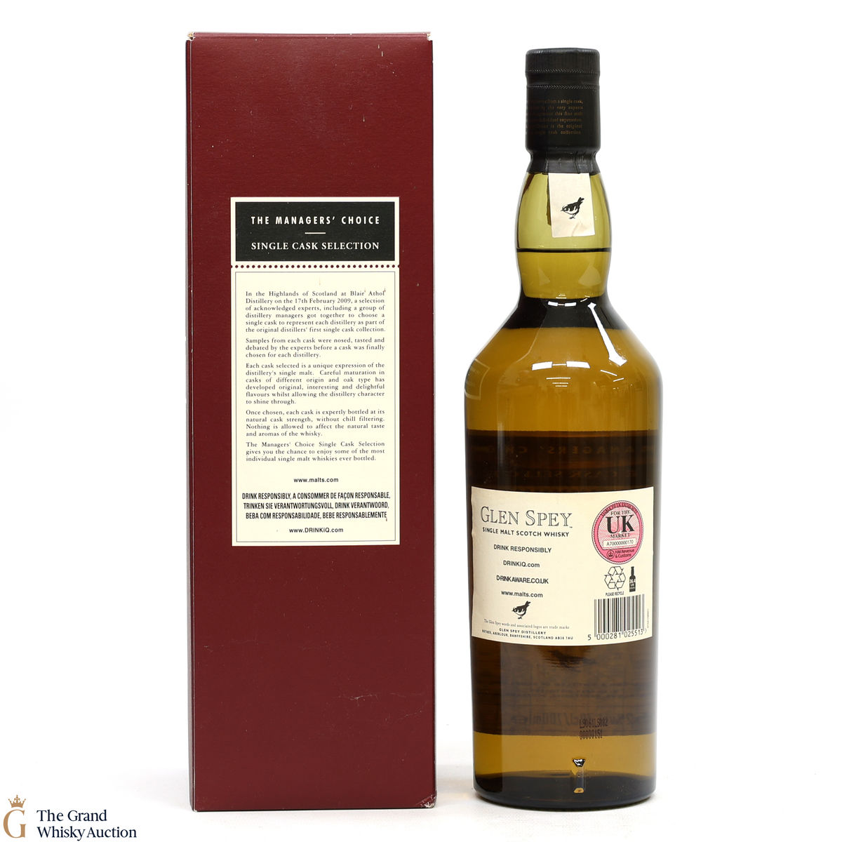 Due to the various ages of bottles and their seals, the condition of liquid is at the buyer's discretion and no claim can be lodged against failure/leakage in transit. Loss and breakage cover is available at 3% of the hammer price as standard. If the lot is not insured, no claim can be lodged against the courier or The Grand Whisky Auction for breakage or loss in transit.