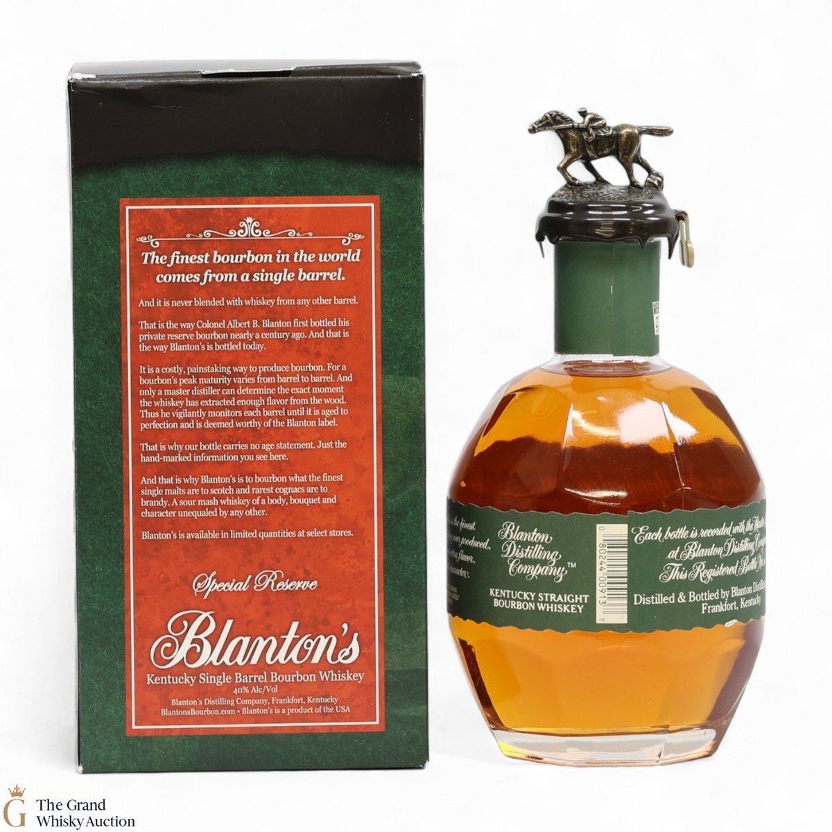PLEASE NOTE: The wax seal on Blanton's bottles are prone to cracking in transit due to their design. Therefore, as stated in our T&Cs, we do not and will not accept liability should the seal be breached, broken, split or leak in transit. Additionally, please know due to the design of the internal cardboard packaging that surrounds the top of the bottles, it too may be torn. By bidding on this lot you have understood this to be true. Insurance is for complete breakage or loss in transit only.