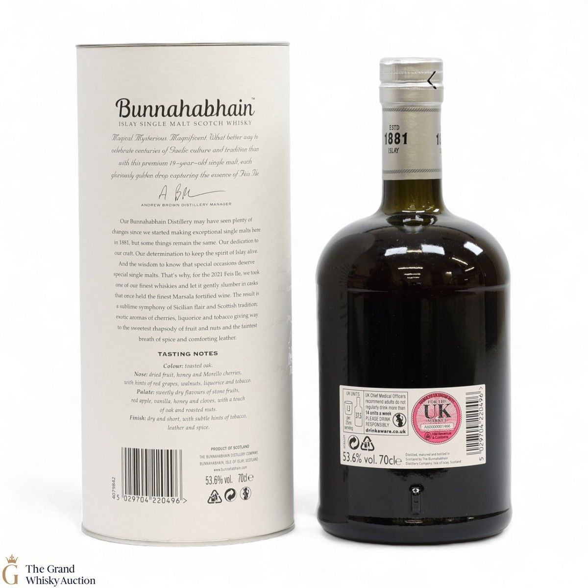 For Feis Ile 2021, Bunnahabhain Distillery released this unique bottling. Distilled back on the 8th of October 2001, this single malt was finished in a cask that once held Marsala fortified wine resulting in a combination of Sicilian flair and Scottish tradition. Bottled on the 19th of January 2021, this is one of only 1333 bottles produced.