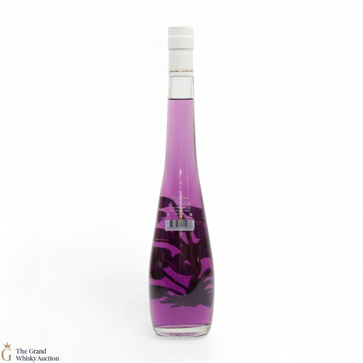 A memorable bottle with minimal writing, all focus is placed on the Violet flower from the G. Miclo Distillery.