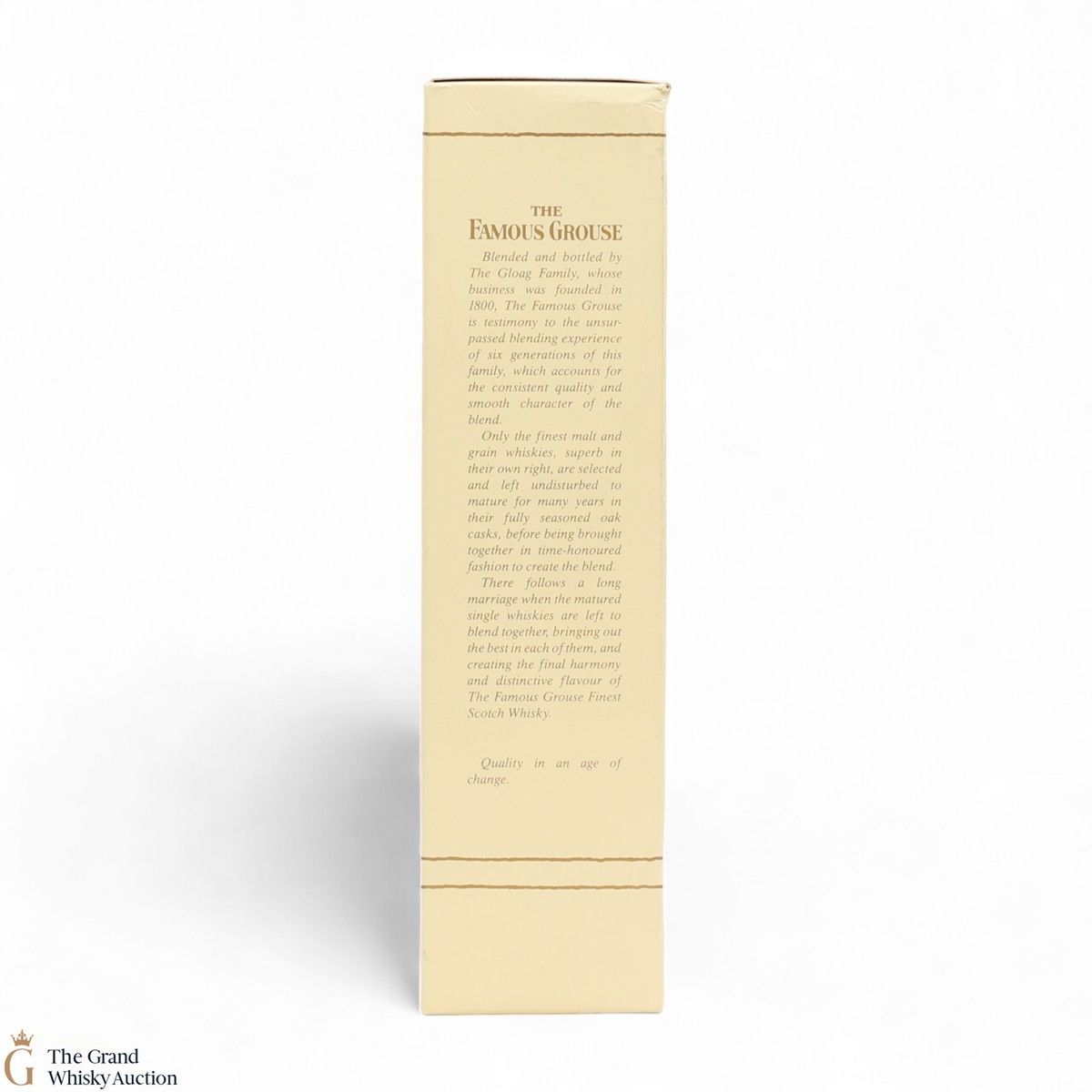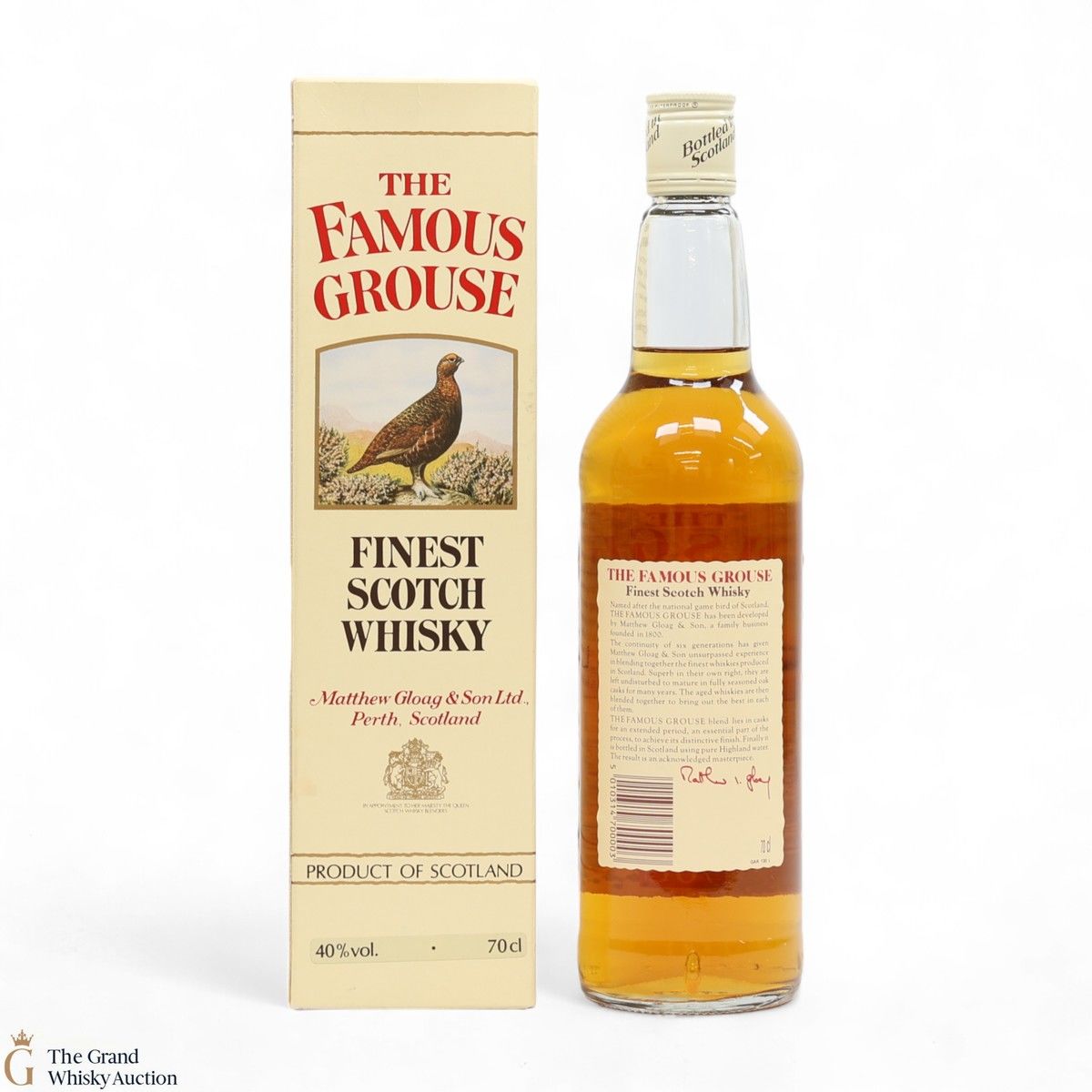 Famous Grouse blended scotch whisky was first produced by Matthew Gloag & Son Ltd in 1896, and is currently produced and owned by The Edrington Group.