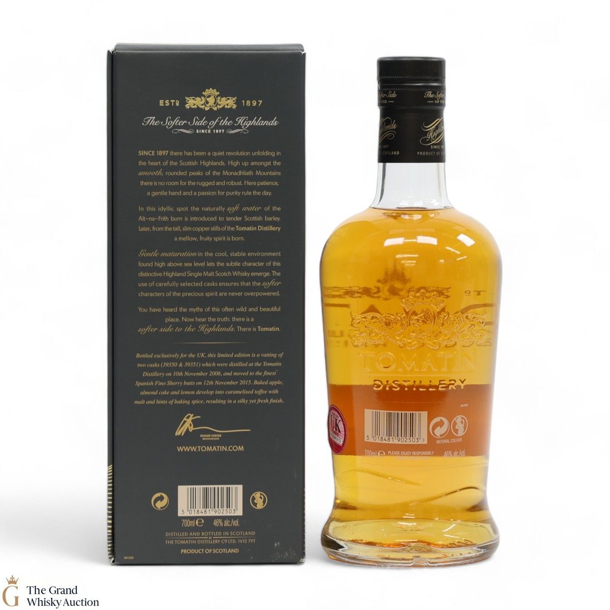 A UK exclusive from the softer side of the Highlands. This 2006 vintage dram from Tomatin was matured for 13 years with its final maturation taking place in Fino Sherry casks.