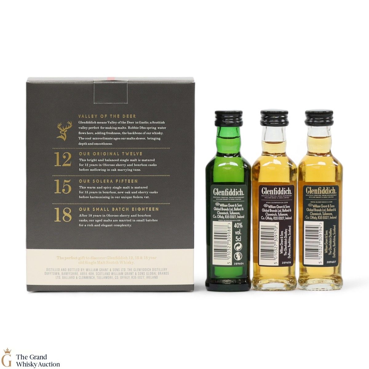 This lot includes 3 x 5cl bottlings of Glenfiddich in a presentation tube: