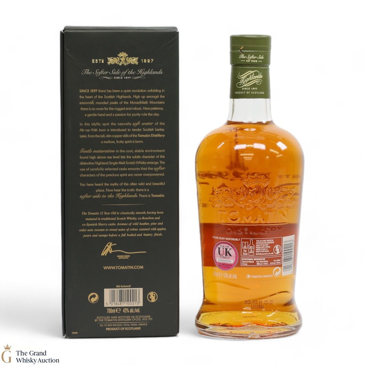 Due to the various ages of bottles and their seals, the condition of liquid is at the buyer's discretion and no claim can be lodged against failure/leakage in transit. Loss and breakage cover is available at 3% of the hammer price as standard. If the lot is not insured, no claim can be lodged against the courier or The Grand Whisky Auction for breakage or loss in transit.