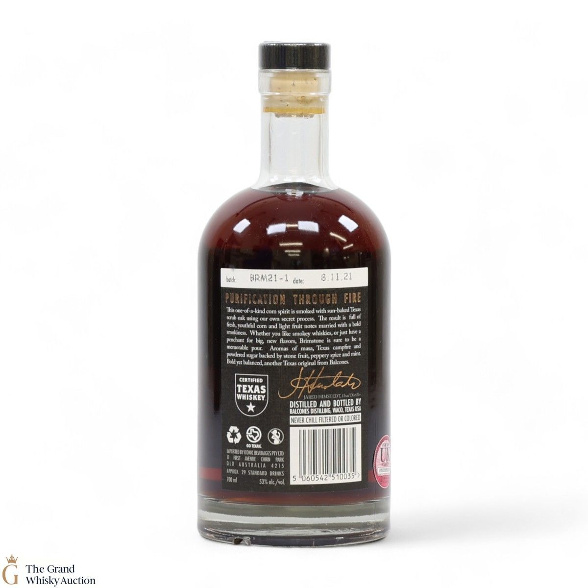 From American craft distiller Balcones comes this smoky corn whisky, fittingly named the Brimstone, by smoking the whisky itself rather than the grain. Made from roasted blue corn and bottled in 2021 at 53% ABV.