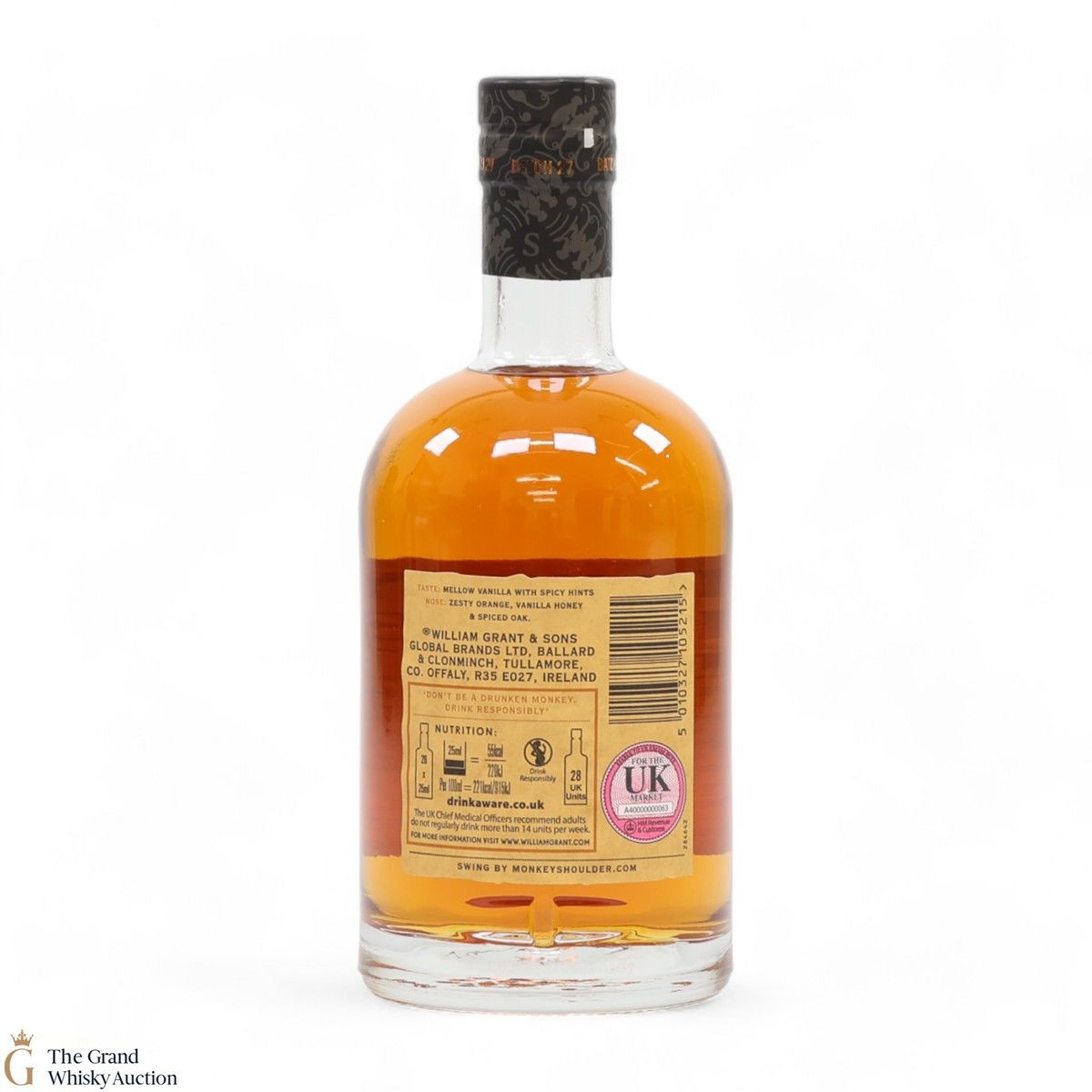 Due to the various ages of bottles and their seals, the condition of liquid is at the buyer's discretion and no claim can be lodged against failure/leakage in transit. Loss and breakage cover is available at 3% of the hammer price as standard. If the lot is not insured, no claim can be lodged against the courier or The Grand Whisky Auction for breakage or loss in transit.