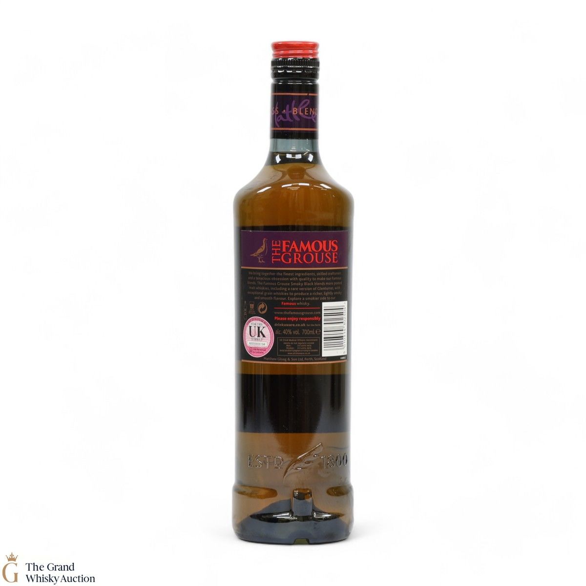 Due to the various ages of bottles and their seals, the condition of liquid is at the buyer's discretion and no claim can be lodged against failure/leakage in transit. Loss and breakage cover is available at 3% of the hammer price as standard. If the lot is not insured, no claim can be lodged against the courier or The Grand Whisky Auction for breakage or loss in transit.