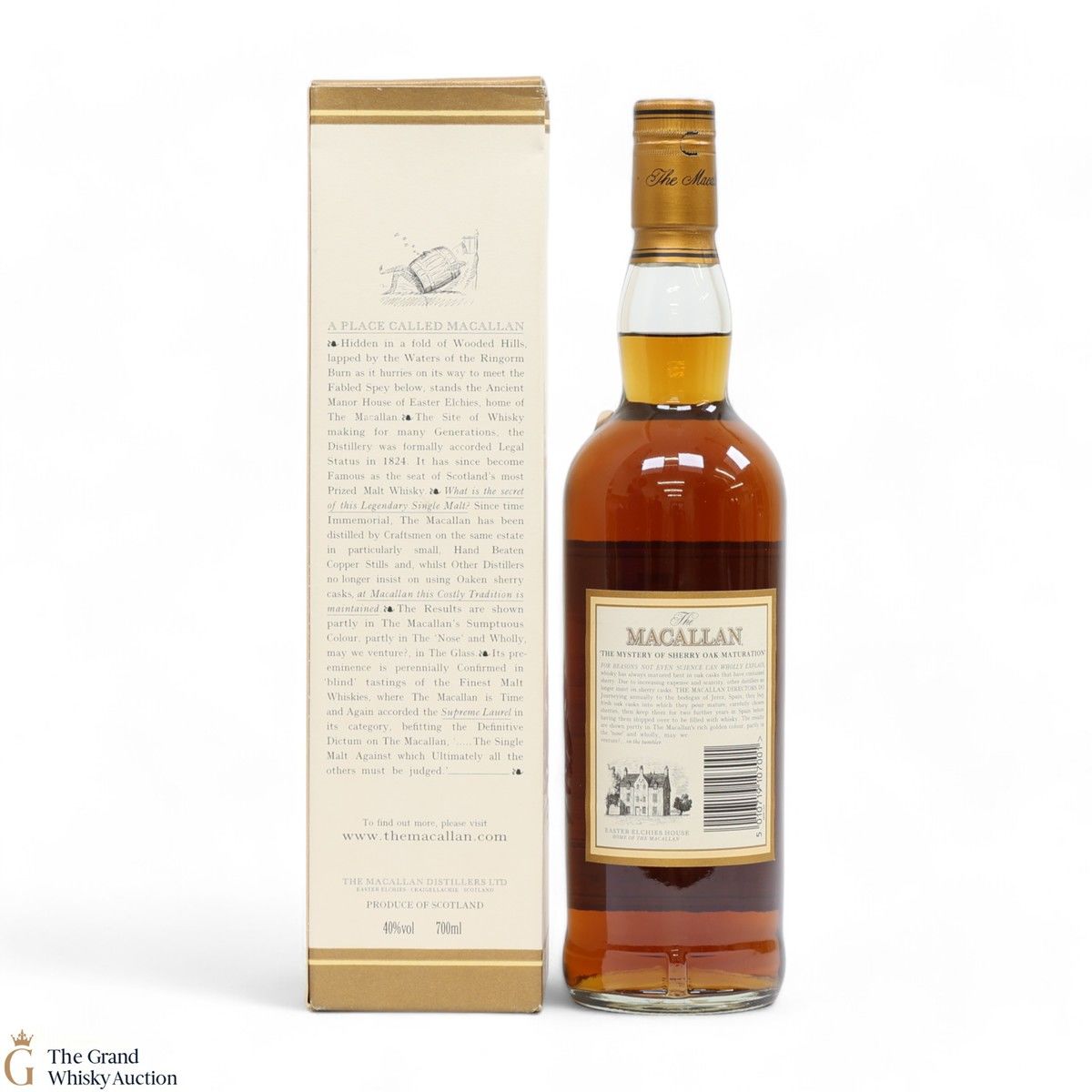An old bottling of Macallan 10-year-old, which has been exclusively matured in sherry oak casks. Bottled in the early 2000s.