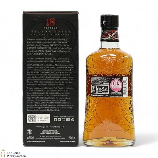 For Viking Pride, Highland Parks Master Whisky Maker Gordon Motion carefully selects up to 120 casks which have matured for 18 years or longer and marries them together, the flavours slowly combine and gather depth and consistency.