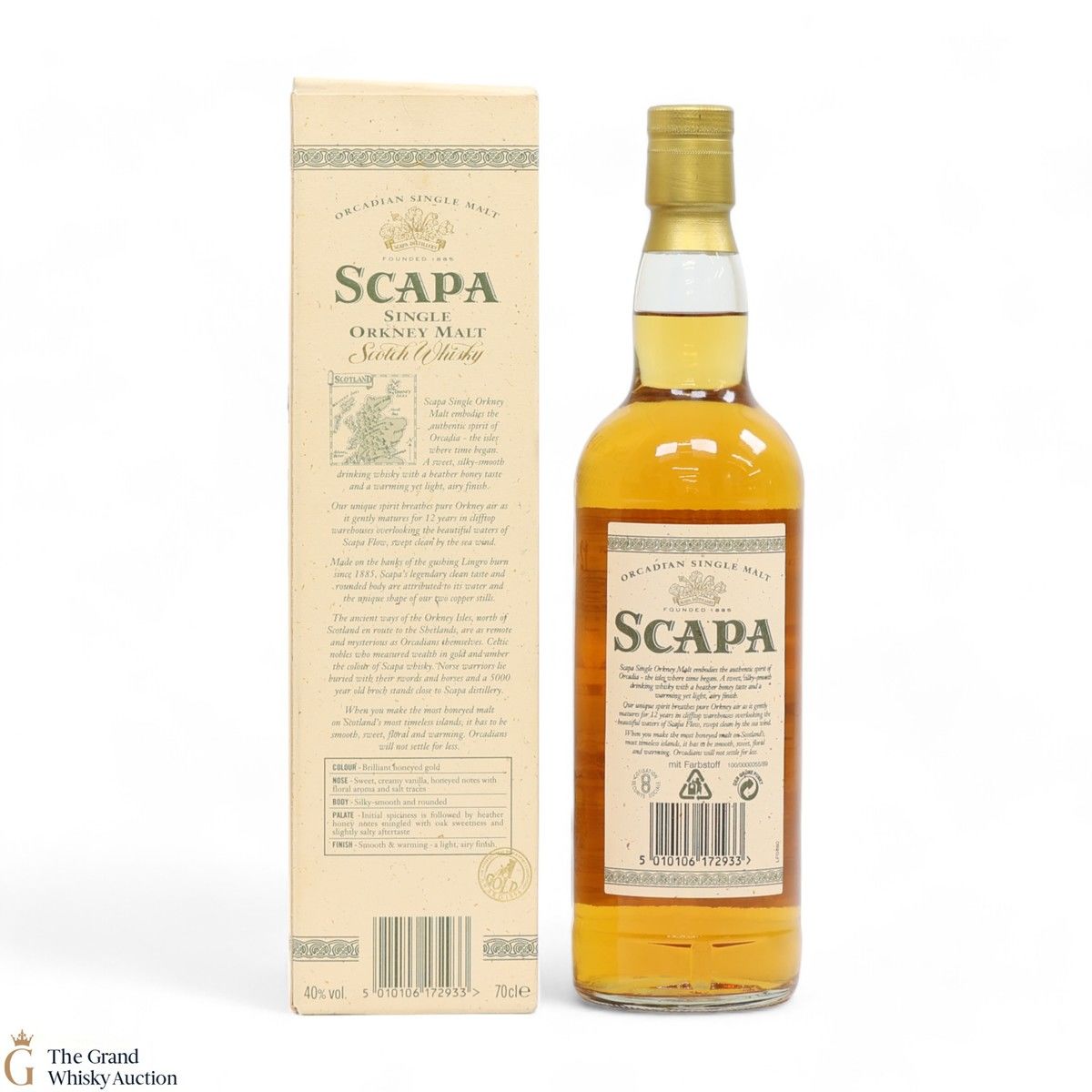A long discontinued 12 Year Old from the Scapa Distillery in Orkney. It was matured for 12 years in clifftop warehouses overlooking the beautiful waters of the Scapa Flow.