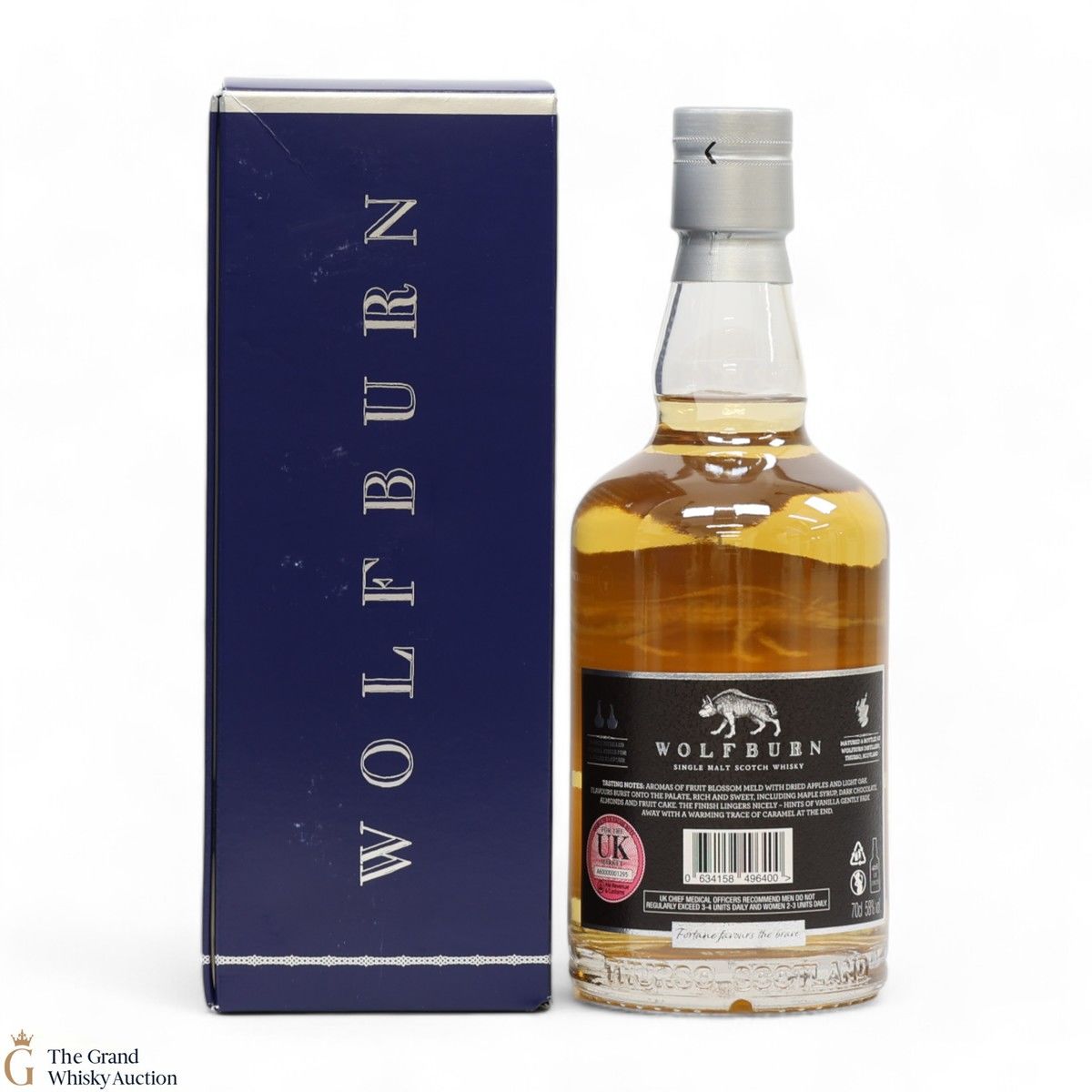 Due to the various ages of bottles and their seals, the condition of liquid is at the buyer's discretion and no claim can be lodged against failure/leakage in transit. Loss and breakage cover is available at 3% of the hammer price as standard. If the lot is not insured, no claim can be lodged against the courier or The Grand Whisky Auction for breakage or loss in transit.