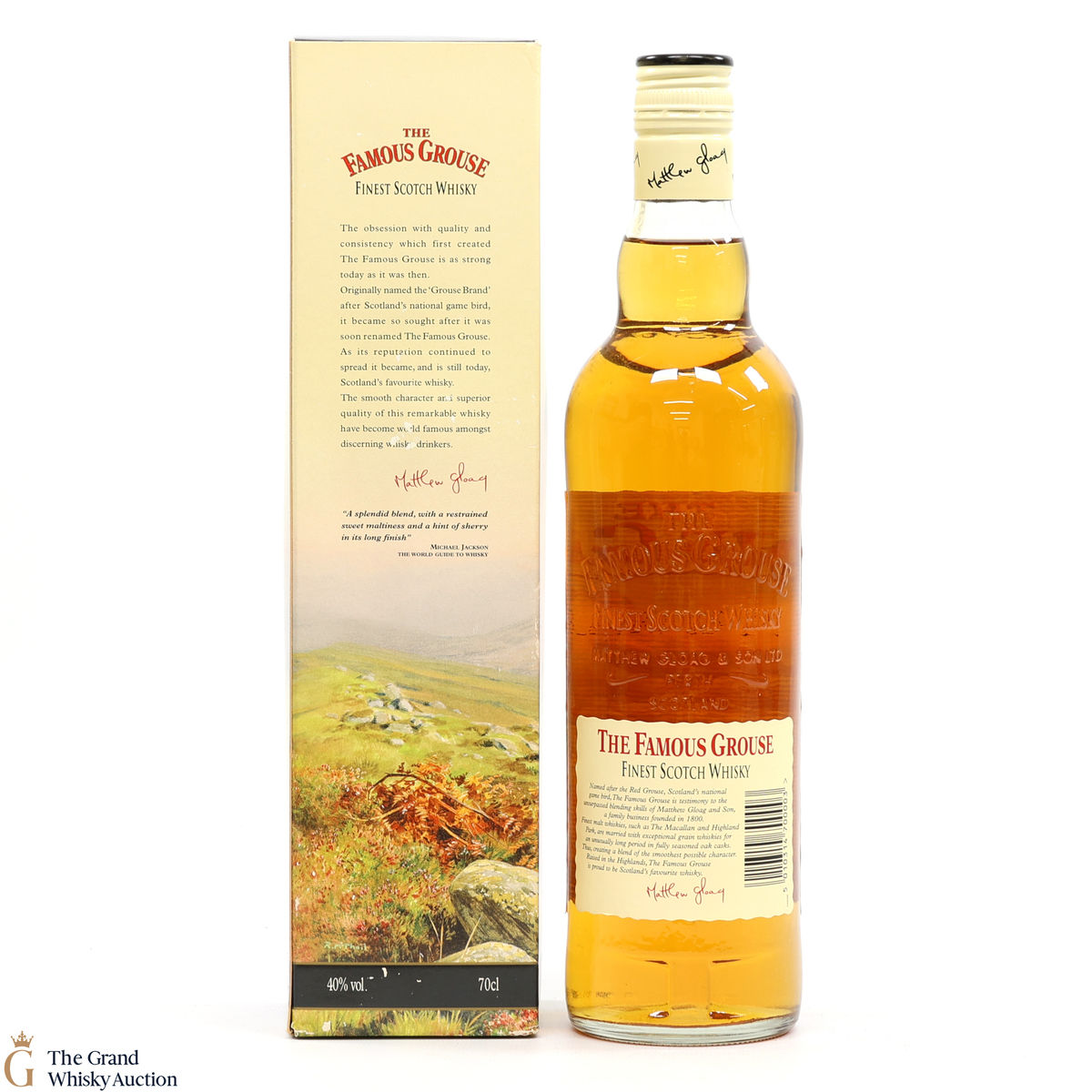 Famous Grouse blended scotch whisky was first produced by Matthew Gloag & Son Ltd in 1896, and is currently produced and owned by The Edrington Group.