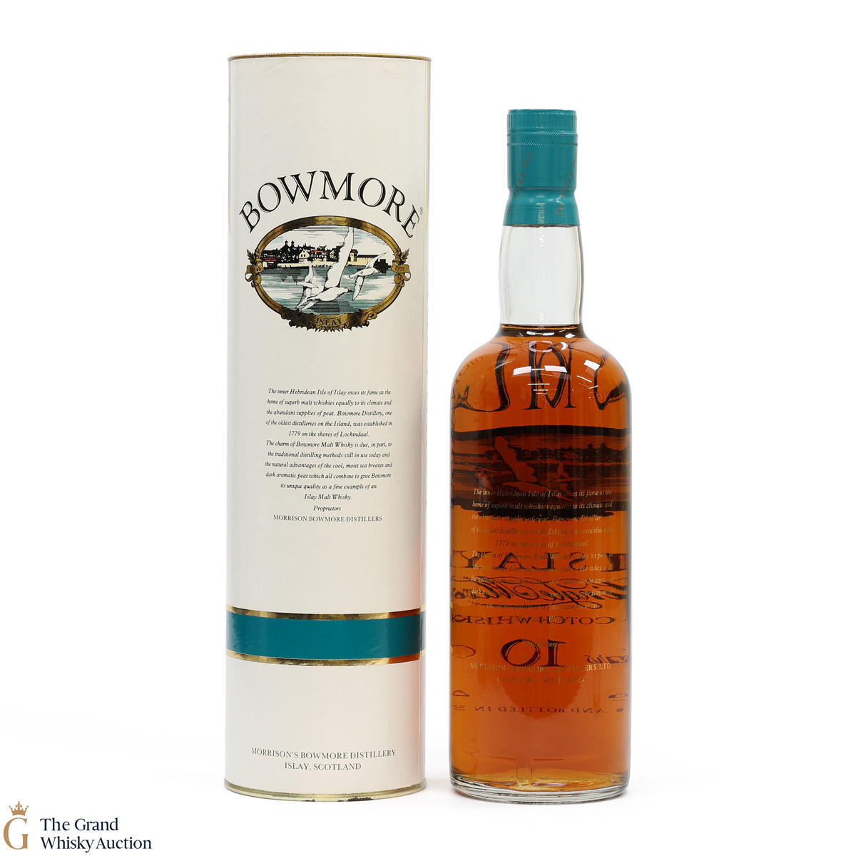This striking older-style presentation of Bowmore 10-Year-Old single malt from the now highly sought-after label bottlings that were released between 1990 and 1995.