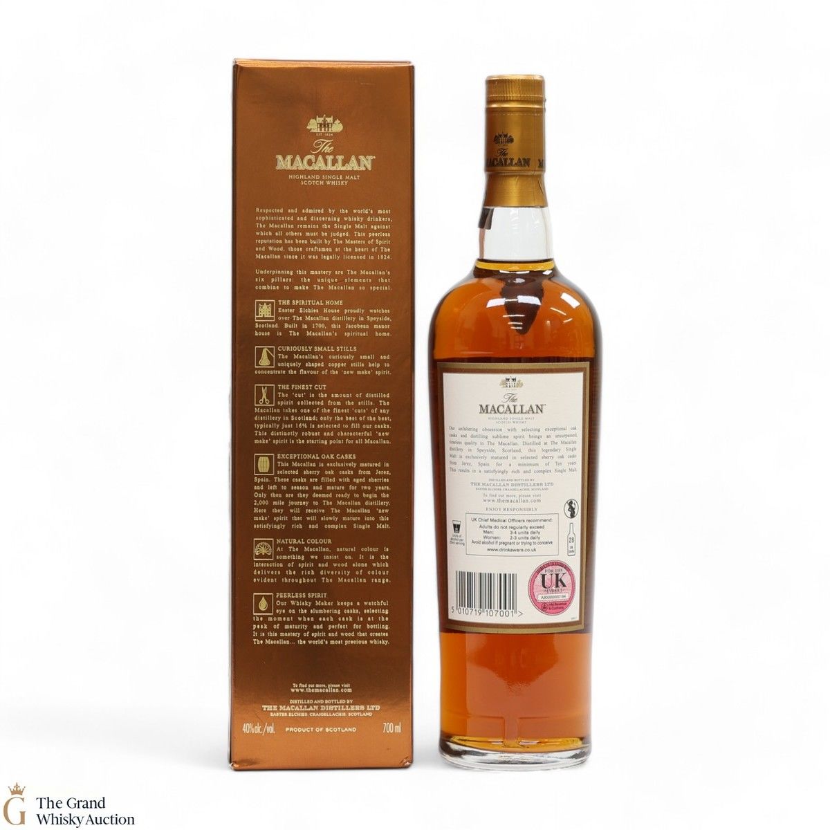 Distilled at the world-renowned Macallan Distillery in Speyside, this single malt was matured exclusively in sherry oak casks from Jerez, Spain. It was aged for a total of 10 years prior to bottling at a strength of 40% ABV.