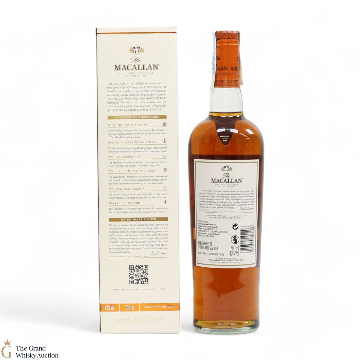 The Macallan 1824 Series celebrates natural colour. The most distinctive and defining characteristic of Macallan is the sherry-seasoned oak casks that are used to mature the whisky. This series shows commitment to 100% natural colour, drawn from wood. The colour of each expression becomes deeper as the range progresses.